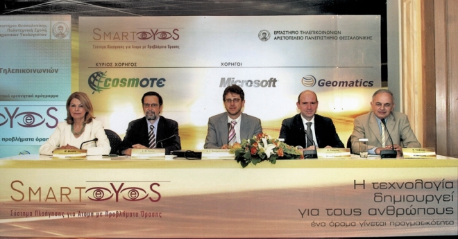 Την έναρξη του πρωτοποριακού ερευνητικού προγράμματος για την πλοήγηση των ατόμων με προβλήματα όρασης, “SmartEyes”, ανακοίνωσαν σήμερα σε Συνέντευξη Τύπου το Εργαστήριο Τηλεπικοινωνιών του Αριστοτέλειου Πανεπιστημίου Θεσσαλονίκης (Α.Π.Θ.) και οι εταιρίες COSMOTE, Microsoft Ελλάς και Geomatics.